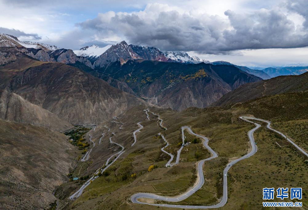 10月13日拍攝的川藏公路“怒江72拐”(無人機(jī)照片)。該處位于昌都市八宿縣境內(nèi),是318國道川藏線上一段艱險與美景并存的山路。新華網(wǎng) 旦增努布 攝