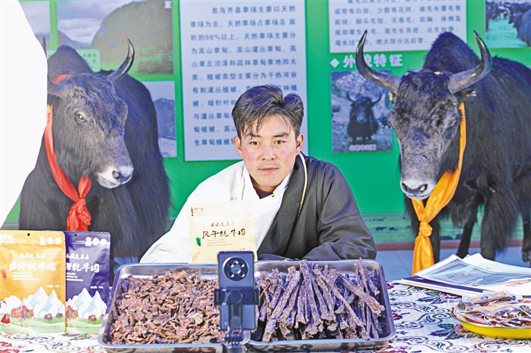 藏家牦牛股份有限公司員工扎西曲培在直播帶貨。