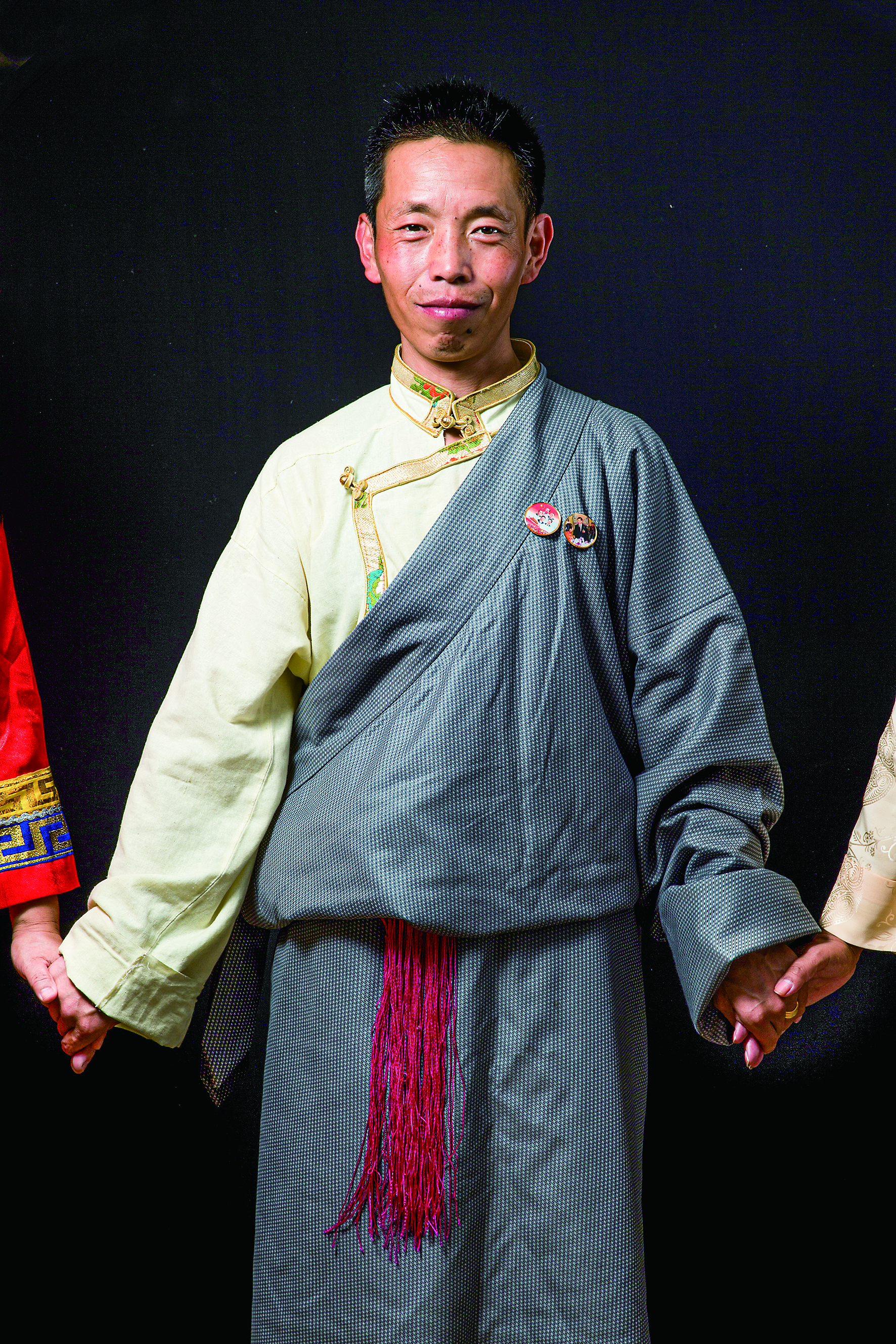 宋玉剛穿著藏族服飾(2015年9月30日攝)。新華社記者金立旺攝
