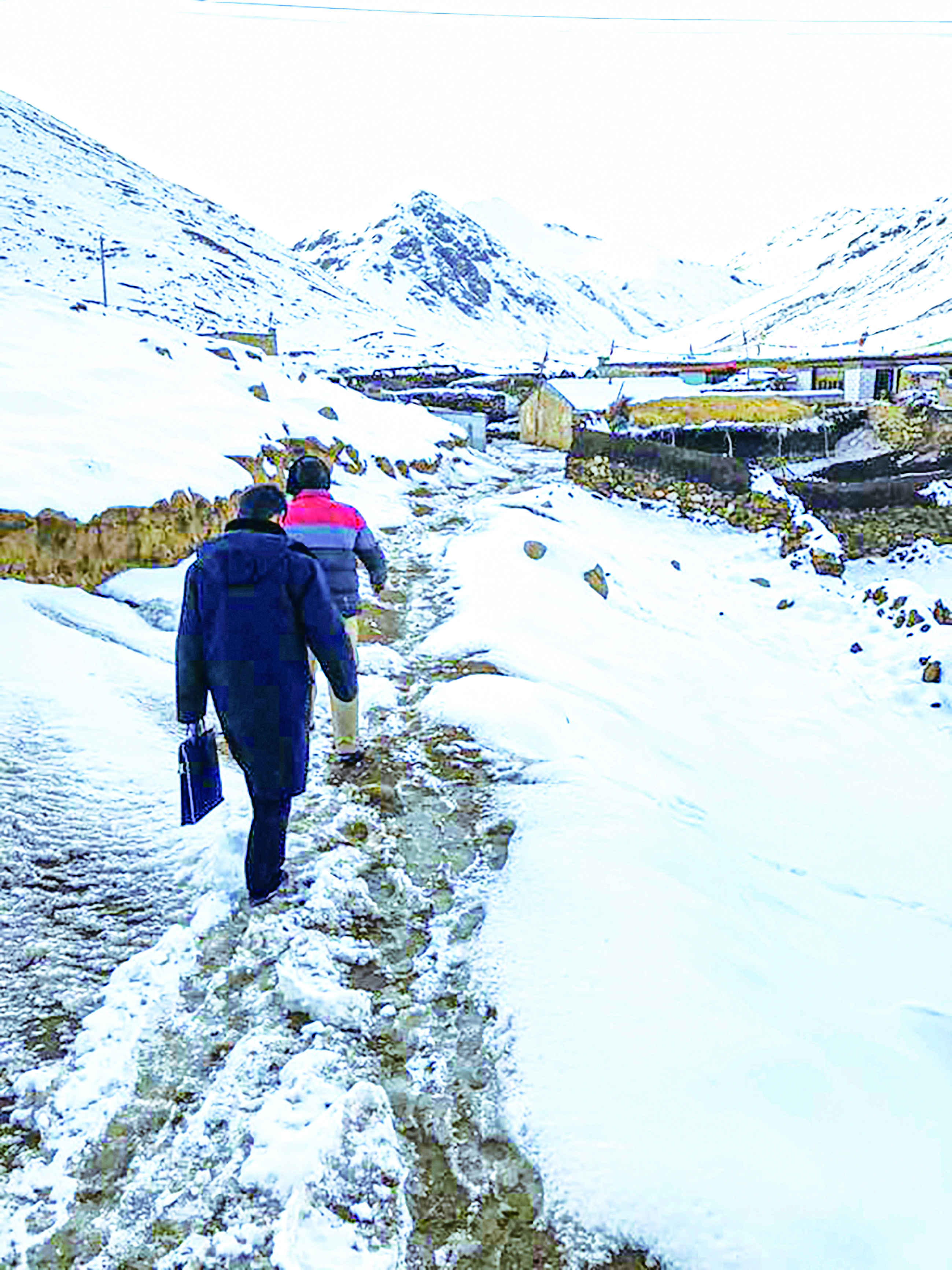 雖說是“搬到鄉(xiāng)所附近”,但西藏的空間尺度畢竟不同,宋玉剛每次出門家訪,大半時間仍要耗在顛簸的土路上。