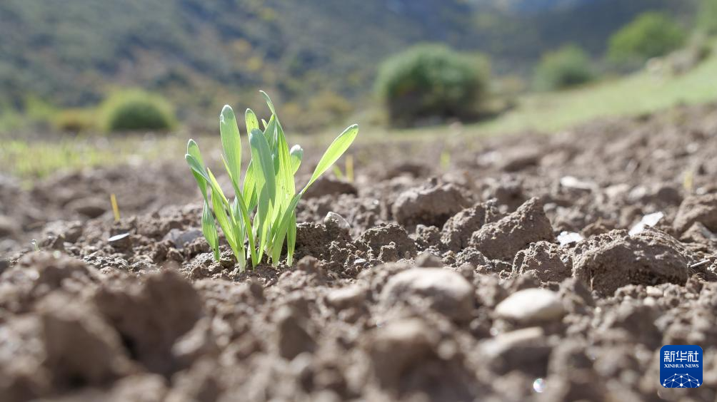 10月21日,西藏嘉黎縣尼屋鄉(xiāng)播種的冬小麥部分已經(jīng)發(fā)芽。新華社記者魏冠宇 攝
