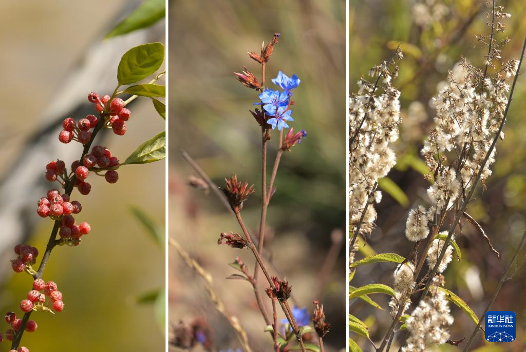 這是10月24日在西藏林芝雅尼國(guó)家濕地公園內(nèi)拍攝的植物(拼版照片)。新華社記者 李賀 攝