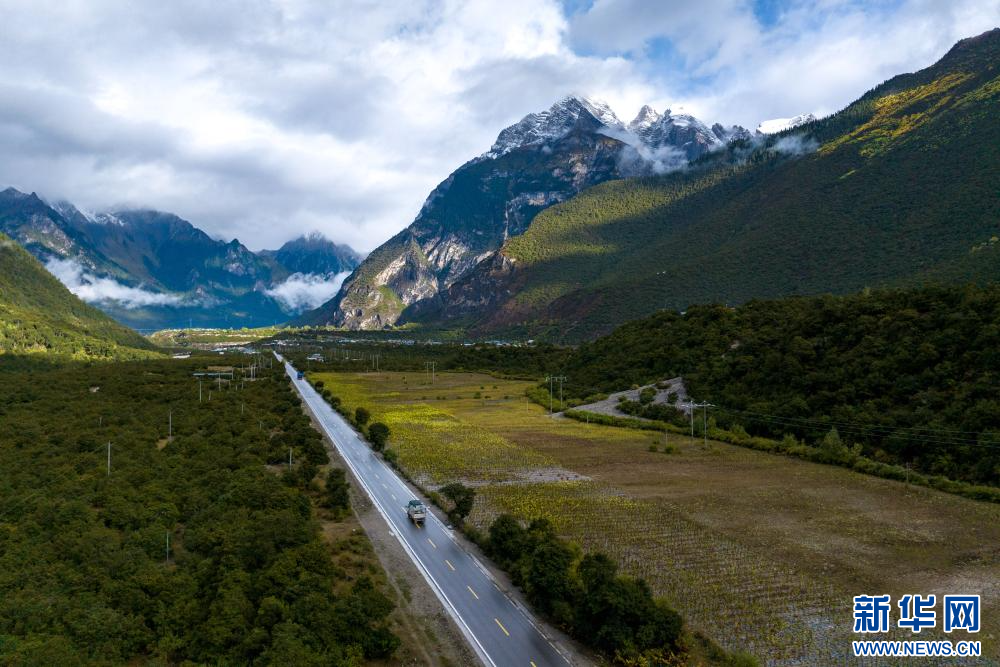 10月11日,在西藏林芝市波密縣境內拍攝的川藏公路(無人機照片)。新華網 旦增努布 攝