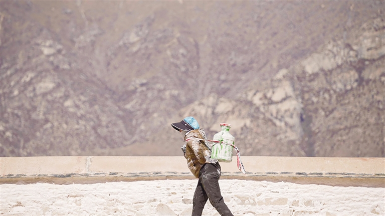 隨著粉刷季的正式開始,整個布達(dá)拉宮仿佛變成了一幅巨大的畫卷。工作人員分工明確,有的負(fù)責(zé)調(diào)配涂料,有的使用噴槍進(jìn)行噴涂,還有的負(fù)責(zé)用手中的工具,向墻面上潑灑著顏料。義工們則忙著搬運材料,盡管工作繁重,但他們的臉上都洋溢著自豪和喜悅。