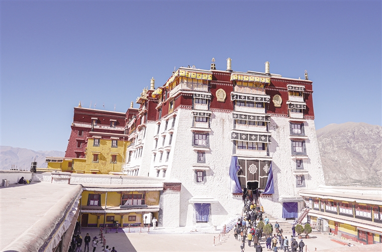 據(jù)了解,按照習(xí)俗慣例,每年藏歷九月前后,拉薩河谷地區(qū)雨季結(jié)束,天氣還沒完全變冷之前,布達(dá)拉宮就會開始一年一度的粉刷工作。從17世紀(jì)開始,粉刷布達(dá)拉宮已是300多年的傳統(tǒng)。布達(dá)拉宮每年的刷墻,是為了保護(hù)布達(dá)拉宮墻體結(jié)構(gòu),有效阻隔建筑外觀被風(fēng)吹日曬、雨水沖刷等自然侵蝕,同時也能避免外墻顏料脫落,墻體結(jié)構(gòu)老化等現(xiàn)象,確保布達(dá)拉宮建筑外觀能夠重?zé)ㄐ骂?,保持靚麗如初的顏色。
