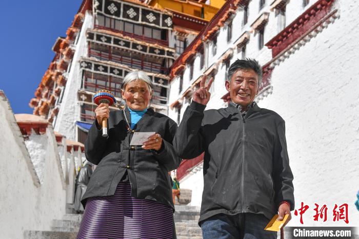 近日,西藏布達(dá)拉宮完成粉刷,呈現(xiàn)出別樣的美。粉刷后的宮墻在陽光映照下,與藍(lán)天白云相襯,顯得莊嚴(yán)肅穆。布達(dá)拉宮的粉刷,不僅是為了讓其外觀更加美觀,更重要的是能對墻體建筑起到保護(hù)作用,增強(qiáng)其防雨功能。按照慣例,布達(dá)拉宮每年藏歷九月左右開始粉刷,并且要在藏歷九月二十二日“降神節(jié)”之前完成,期間有眾多民眾,游客積極參與。布達(dá)拉宮作為世界文化遺產(chǎn),是眾多進(jìn)藏游客必去的“打卡點(diǎn)”。圖為11月8日,來自西藏昌都的信眾準(zhǔn)備進(jìn)入布達(dá)拉宮。中新社記者 貢確 攝