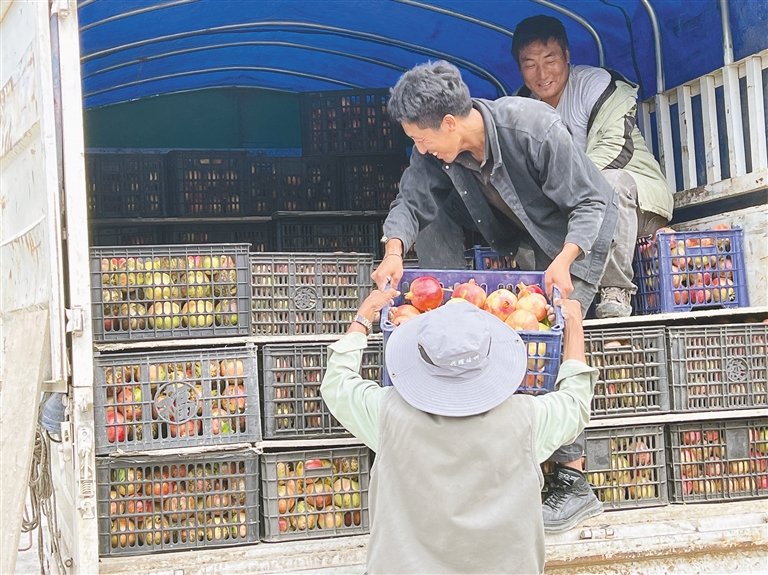 圖為昌西村果農(nóng)將石榴裝車,準(zhǔn)備外運(yùn)銷售?!∮浾摺鳌⊥ㄓ崋T 吳子偉 攝