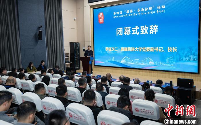 西藏民族大學(xué)黨委副書記、校長(zhǎng)羅旺次仁在第四屆“藏秦·喜馬拉雅”論壇閉幕式上發(fā)表致辭。主辦方供圖