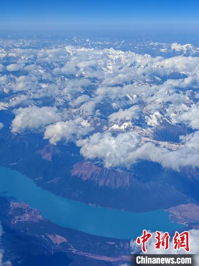 近日,中新網(wǎng)記者從云南昆明長(zhǎng)水國際機(jī)場(chǎng)乘機(jī)前往西藏自治區(qū)拉薩市,飛機(jī)穿過橫斷山脈,抵達(dá)雪域高原。望向窗外,沿途依次看到了玉龍雪山、南迦巴瓦雪山以及遠(yuǎn)遠(yuǎn)的念青唐古拉雪山等,還有很多小新也不知道名字的雪山,可謂實(shí)現(xiàn)了“雪山自由”。圖為11月13日,從飛機(jī)上俯瞰西藏林芝巴松錯(cuò)。記者 江飛波 攝