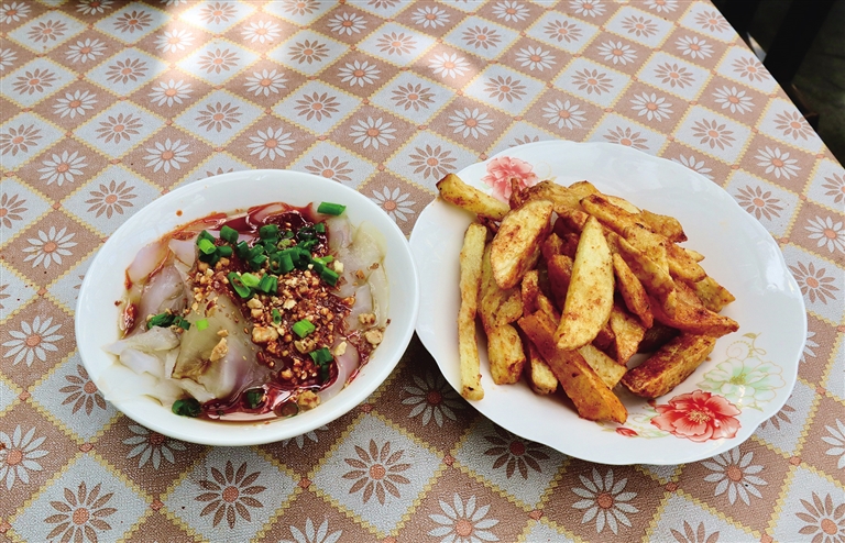 除了真實而美好的環(huán)境,涼粉店當(dāng)然以涼粉為主打??ú翛龇鄣甑臎龇蹆r格親民,Q彈爽滑的涼粉配上店家特制的辣椒,再撒上一層花生碎,看似簡單口感卻層次豐富,讓人回味無窮。除了涼粉,卡擦涼粉店還供應(yīng)炸土豆、涼面等具有代表性的拉薩小吃。嗦粉吃面的同時,能真正感受到日光之城的溫暖和花朵的治愈,這樣的美好體驗可能就在你身旁的小店中。