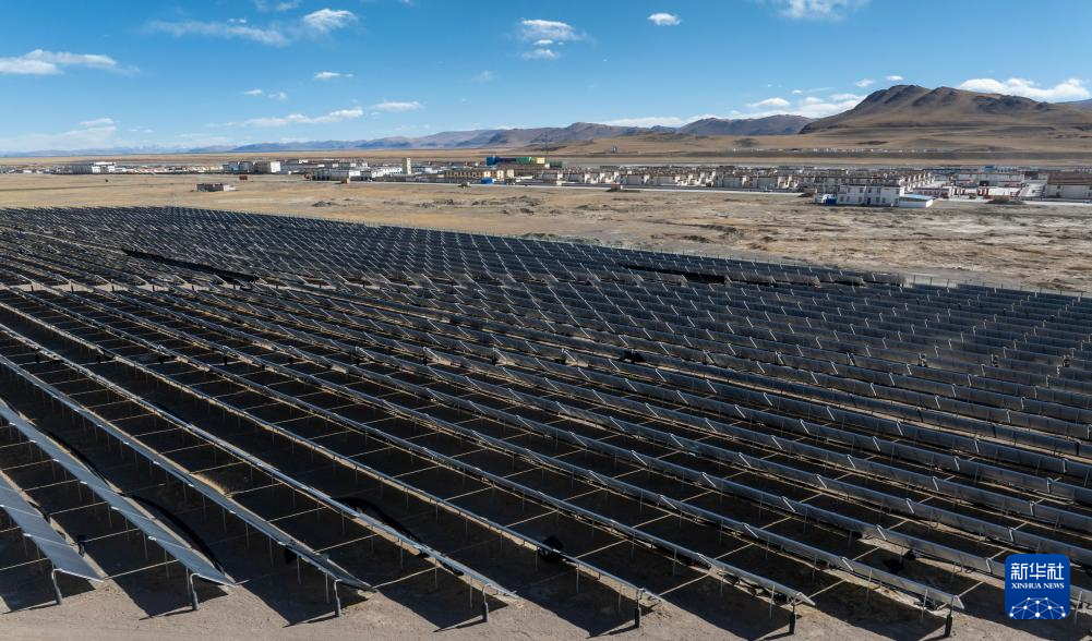 鳥(niǎo)瞰措勤縣城區(qū)清潔能源集中供暖特許經(jīng)營(yíng)項(xiàng)目的光伏陣列(無(wú)人機(jī)照片,11月20日攝)。新華社記者 姜帆 攝