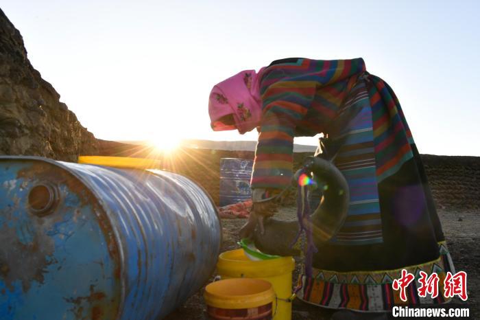 12月12日,西藏自治區(qū)那曲市安多縣帕那鎮(zhèn)牧民土巴卓瑪正在清洗擠奶桶。中新社記者 貢嘎來松 攝