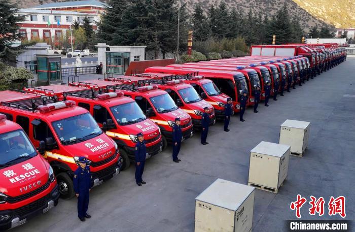圖為林芝市森林消防支隊(duì)接收西藏森林消防總隊(duì)配發(fā)車輛及裝備。費(fèi)賢浩 攝