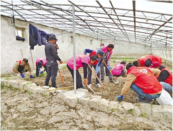 圖為薩爾鄉(xiāng)開展“志愿紅”播種“愛心菜”活動(dòng)。