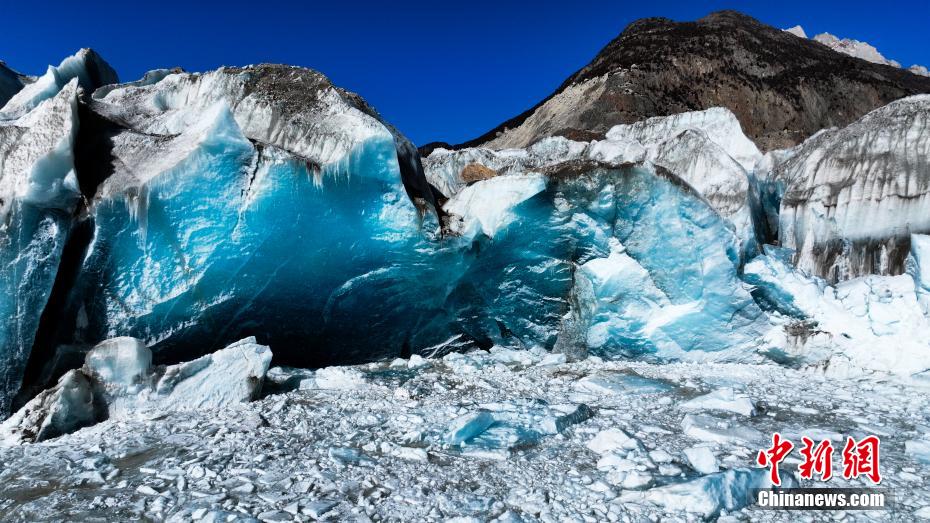 12月19日,西藏自治區(qū)昌都市八宿縣然烏鎮(zhèn)西南部來古村來古冰川風(fēng)光狀美。來古冰川是多個冰川的統(tǒng)稱,其外觀形態(tài)獨特壯美,屬于海洋性冰川。中新社記者 貢嘎來松 攝