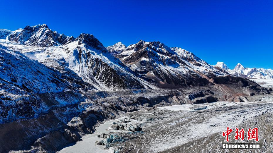 12月19日,西藏自治區(qū)昌都市八宿縣然烏鎮(zhèn)西南部來古村來古冰川風(fēng)光狀美。來古冰川是多個冰川的統(tǒng)稱,其外觀形態(tài)獨特壯美,屬于海洋性冰川。(無人機照片)中新社記者 貢嘎來松 攝