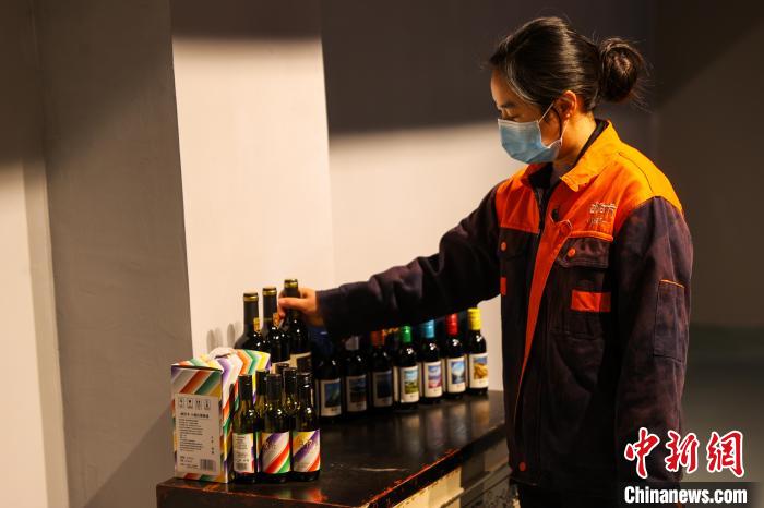 芒康縣在種植葡萄方面有著悠久的歷史,因干熱河谷氣候優(yōu)勢(shì)明顯,紫外線強(qiáng)、光線充足,適宜大面積栽種無公害綠色釀酒葡萄。圖為工作人員檢查瓶儲(chǔ)區(qū)葡萄酒狀態(tài)。中新社記者 薛蒂 攝