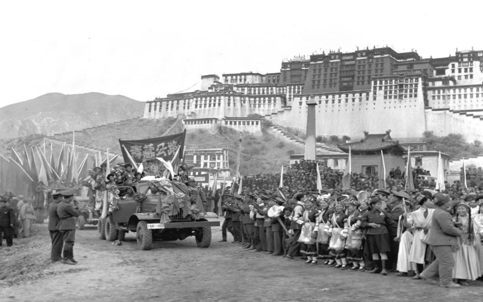 1955年1月11日,康藏、青藏公路的通車典禮在拉薩舉行。通往祖國邊疆西藏的兩條大動脈——康藏公路和青藏公路,已于1954年12月25日同時通車。 新華社記者劉詩臨、任用昭攝