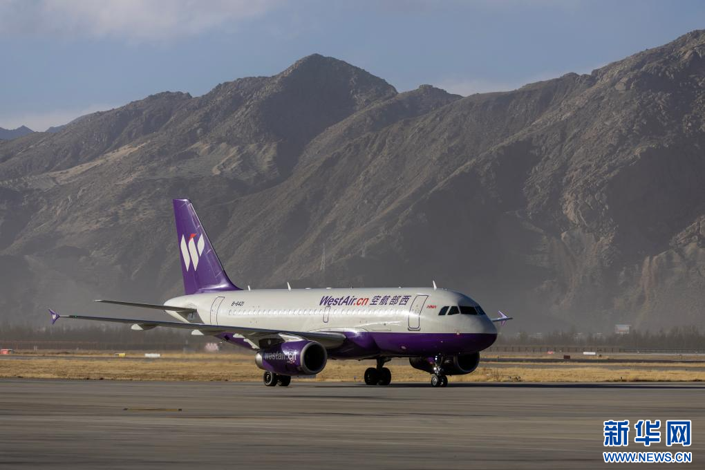 25日,執(zhí)飛拉薩-重慶-新加坡國際新航線首飛任務(wù)的西部航空PN6425客運(yùn)航班降落在拉薩貢嘎國際機(jī)場。新華社記者 姜帆 攝