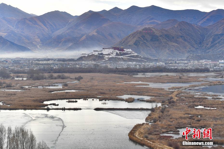 12月29日,冬日早晨,拉薩美如畫。拉薩河被晨光染成金色,河水靜靜流淌。西藏自治區(qū)拉薩市的拉魯濕地國(guó)家級(jí)自然保護(hù)區(qū)內(nèi),候鳥歡快,忙著覓食、嬉戲。遠(yuǎn)處,布達(dá)拉宮與拉魯濕地相互映襯,構(gòu)成了一幅絕美畫卷。圖為12月29日,晨霧中的布達(dá)拉宮。貢確 攝