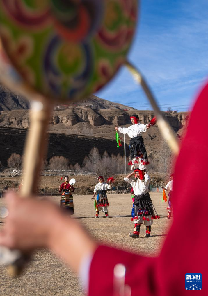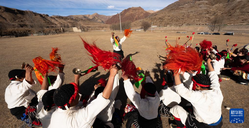 西藏昌都市丁青縣尺犢鎮(zhèn)烏巴村文藝演出隊在跳熱巴舞(1月5日攝)。新華社記者 丁增尼達 攝