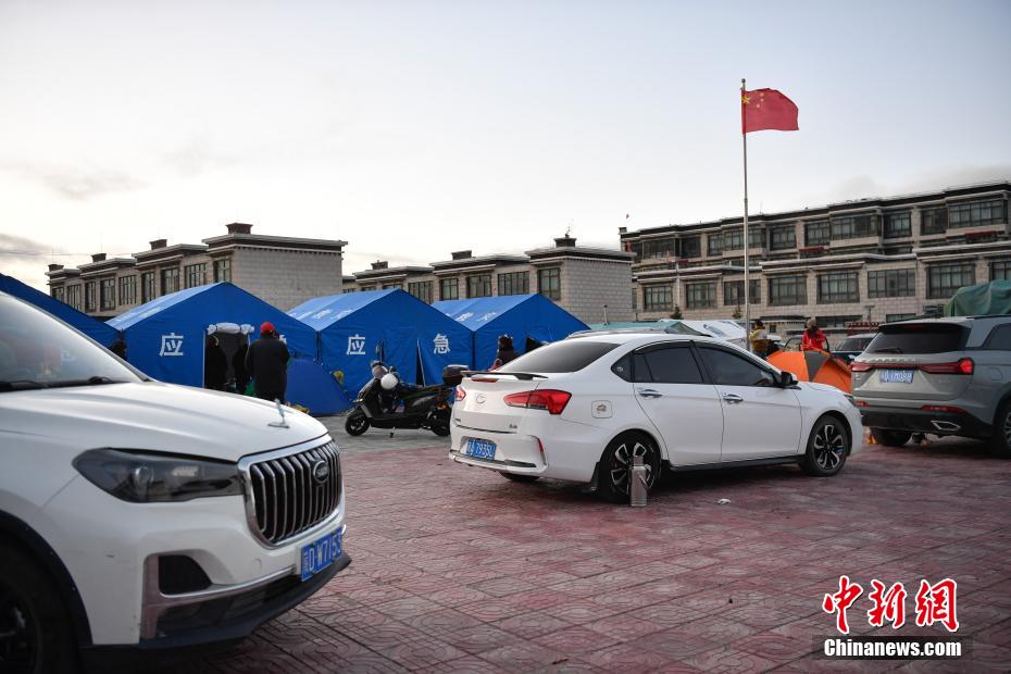 1月7日9時5分,西藏自治區(qū)日喀則市定日縣措果鄉(xiāng)附近(東經(jīng)87.45度,北緯28.50度)發(fā)生6.8級地震。日喀則市官方介紹,經(jīng)初步排查,截至當日15時,地震共造成95人遇難,130人受傷,房屋損毀正在統(tǒng)計中。圖為日喀則拉孜縣境內(nèi)的村民在臨時搭建的帳篷里準備過夜。中新社記者 貢嘎來松 攝
