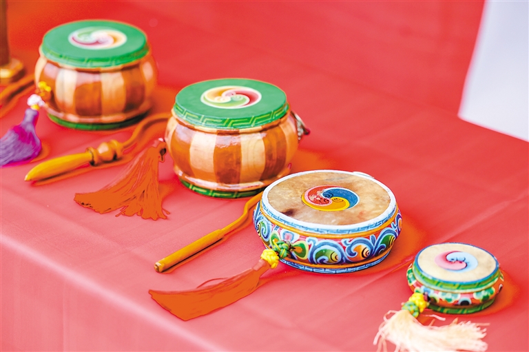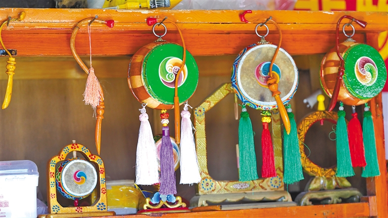 貢覺(jué)頓珠制作的小型裝飾鼓。