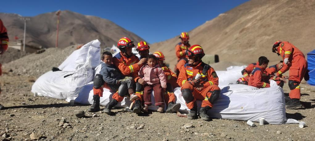 “從昨天開始,我們就在這里搭帳篷、搬物資,孩子們都認識我們了?!蔽鞑叵谰仍傟犂_市消防救援支隊特勤大隊三站副站長、指揮員扎西曲培說,“昨天剛剛經(jīng)歷地震,許多群眾有些不安。天亮之后,大家的情緒好起來了。”