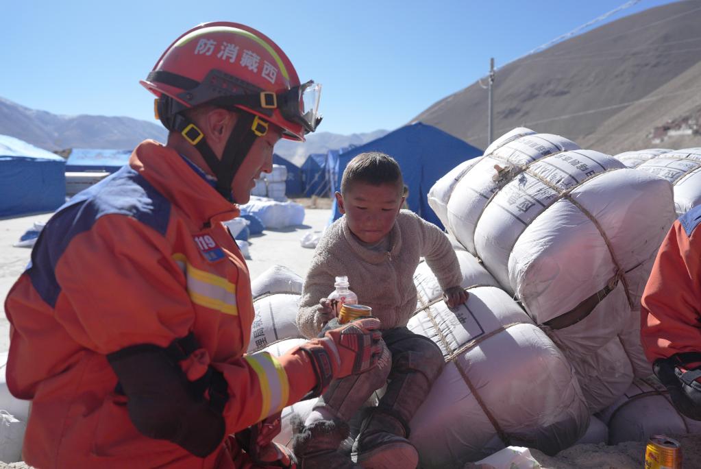 1月7日,救援人員在定日縣長所鄉(xiāng)古榮村展開救援。