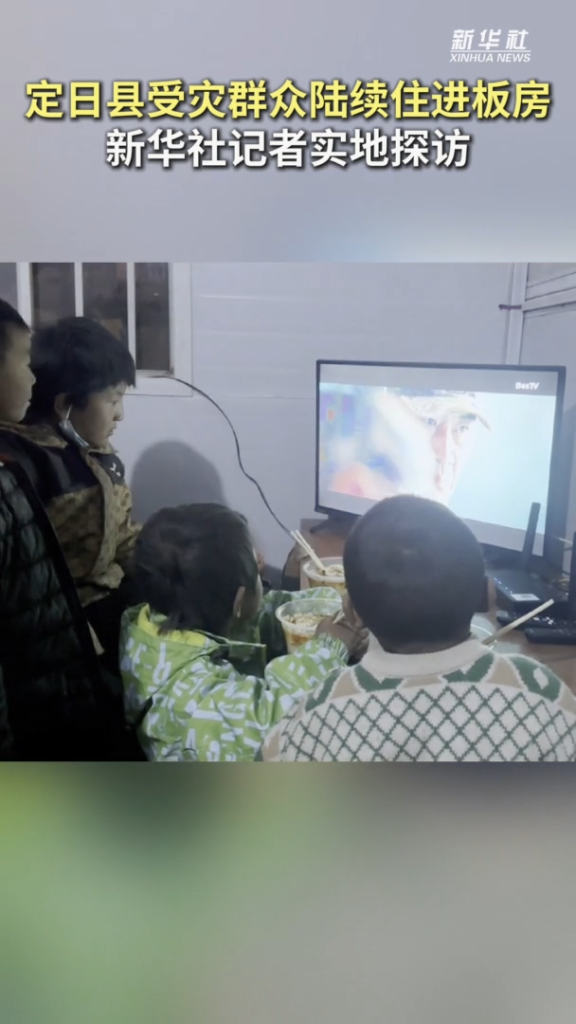 11日,西藏定日縣長所鄉(xiāng)古榮村板房安置點接通寬帶、IPTV網(wǎng)絡電視。孩子們圍坐在電視機前,說想要觀看電影《戰(zhàn)狼》。這是此次西藏定日縣6.8級地震災區(qū)第一個接通有線千兆寬帶和IPTV網(wǎng)絡電視、實現(xiàn)Wi-Fi覆蓋的活動板房。