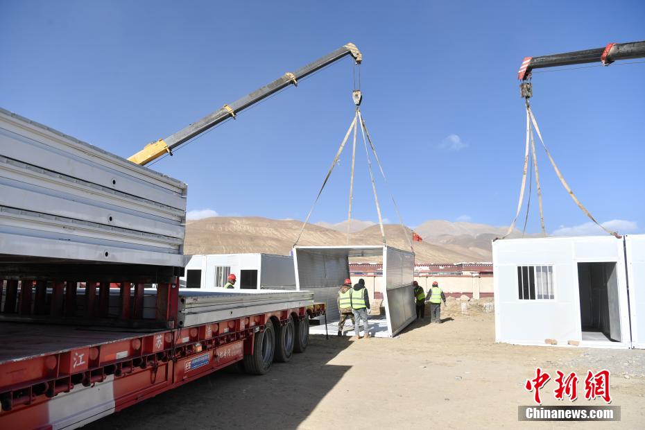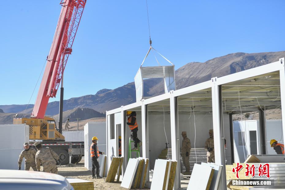 1月7日9時(shí)5分,西藏自治區(qū)日喀則市定日縣發(fā)生6.8級(jí)地震,震源深度10公里。災(zāi)情就是命令,當(dāng)?shù)卣推髽I(yè)迅速行動(dòng),目前災(zāi)區(qū)多個(gè)鄉(xiāng)村都在加緊進(jìn)行保溫板房建設(shè),只為讓受災(zāi)民眾早日擁有“安心巢”。據(jù)了解,每間板房有18平方米,可容納4到5人,板房設(shè)有折疊床、桌子、爐子等,并保障民眾用電需求,讓他們更好地度過(guò)冬天。圖為1月10日,西藏日喀則市定日縣措果鄉(xiāng)嘎熱果吉村保溫板房建設(shè)現(xiàn)場(chǎng)。中新社記者 貢嘎來(lái)松 攝