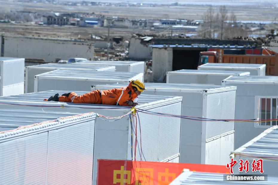1月7日9時(shí)5分,西藏自治區(qū)日喀則市定日縣發(fā)生6.8級(jí)地震,震源深度10公里。災(zāi)情就是命令,當(dāng)?shù)卣推髽I(yè)迅速行動(dòng),目前災(zāi)區(qū)多個(gè)鄉(xiāng)村都在加緊進(jìn)行保溫板房建設(shè),只為讓受災(zāi)民眾早日擁有“安心巢”。據(jù)了解,每間板房有18平方米,可容納4到5人,板房設(shè)有折疊床、桌子、爐子等,并保障民眾用電需求,讓他們更好地度過(guò)冬天。圖為1月11日,西藏日喀則市定日縣曲洛鄉(xiāng)措昂村安置點(diǎn),中國(guó)交建西藏指揮部抗震救災(zāi)前線工人在為板房搭設(shè)電路。中新社記者 貢嘎來(lái)松 攝