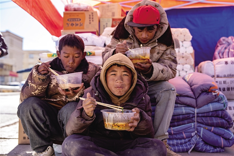 “2023年,我們老家甘肅積石山發(fā)生地震的時候,我在日喀則,當(dāng)時心里很難受,但是看到全國都在支援老家,心里暖暖的。這次定日地震,我和老鄉(xiāng)立刻就過來了。能讓大家吃上熱飯、看到大家滿足的笑臉,我就很開心了。”馬俊云說。
