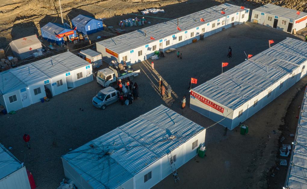 1月13日,在日喀則市定日縣長所鄉(xiāng)古榮村,受災群眾正在搬進板房。新華社記者 丁增尼達 攝
