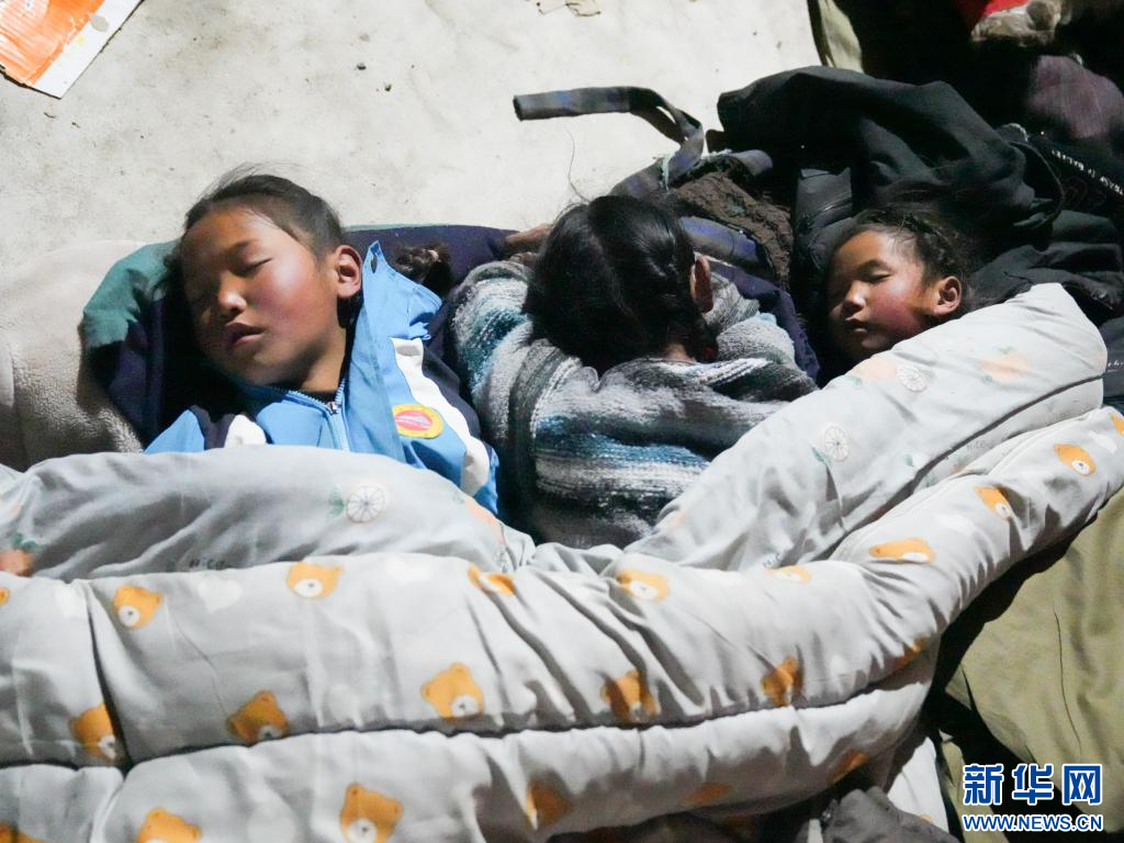 1月8日凌晨,受災(zāi)群眾在日喀則市定日縣嘎旦村的安置點(diǎn)內(nèi)休息。 新華社記者 丁汀 攝