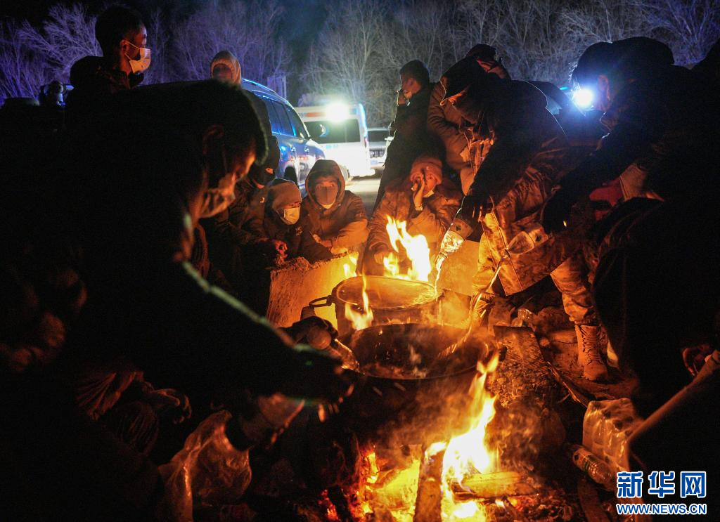 1月7日晚,長所鄉(xiāng)集中安置點(diǎn)的受災(zāi)群眾在煮水準(zhǔn)備泡方便面。新華社記者 晉美多吉 攝
