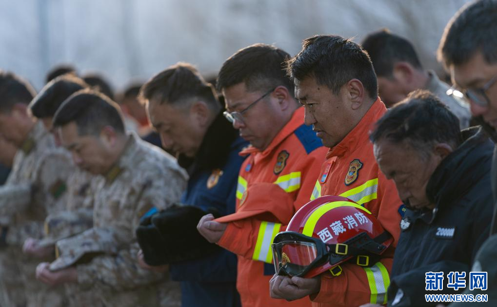 1月13日上午9時(shí)30分,西藏定日6.8級地震遇難同胞悼念儀式在受災(zāi)最嚴(yán)重的長所鄉(xiāng)舉行。參與救援的解放軍和武警官兵、消防救援人員、公安民警、醫(yī)護(hù)人員、青年志愿者及有關(guān)企業(yè)員工、干部職工、震區(qū)群眾代表數(shù)百人,脫帽肅立,向遇難同胞默哀3分鐘。 新華社記者 丁增尼達(dá) 攝
