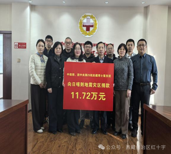 2025年1月7日,西藏日喀則市定日縣不幸遭受6.8級地震重創(chuàng),導致重大人員傷亡及財產(chǎn)損失。1月14日,中組部、團中央第25批赴藏博士服務團響應黨中央號召順利抵達拉薩。雖然大家還沒完全克服高反帶來的不適,但災情深深牽動著所有博士服務團成員的心,大家紛紛表示要捐款為災區(qū)略盡綿薄之力。應大家的要求,1月17日,博士服務團舉行了抗震救災募捐活動,共籌集善款11.72萬元。