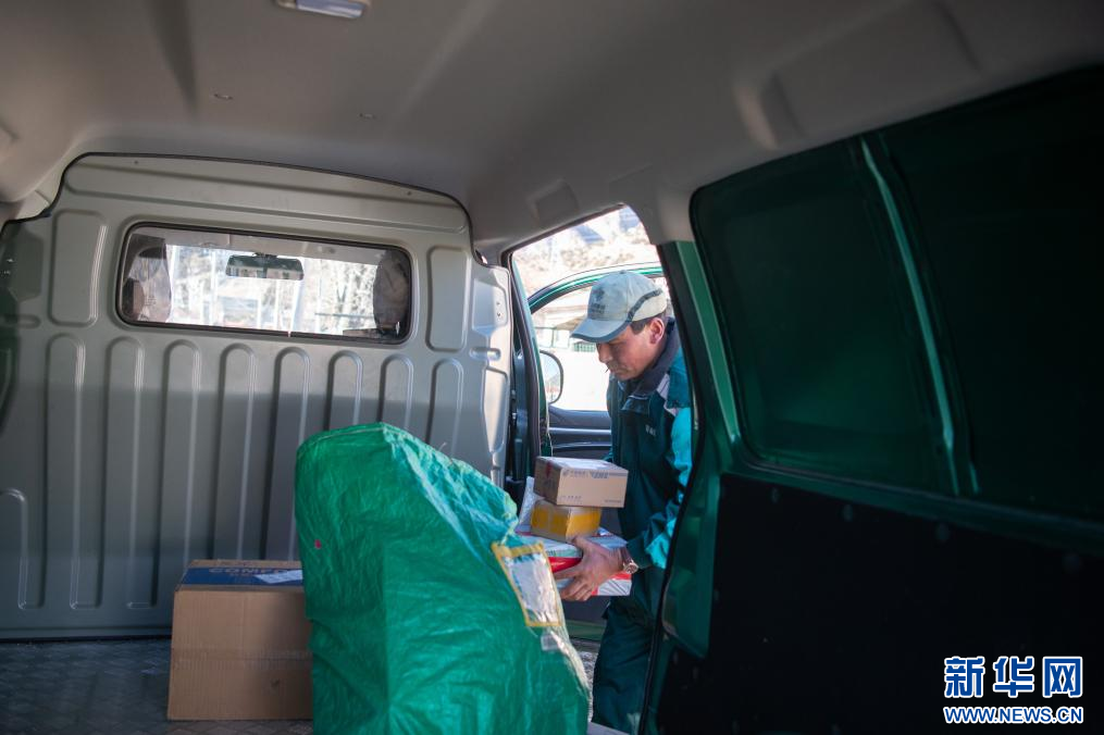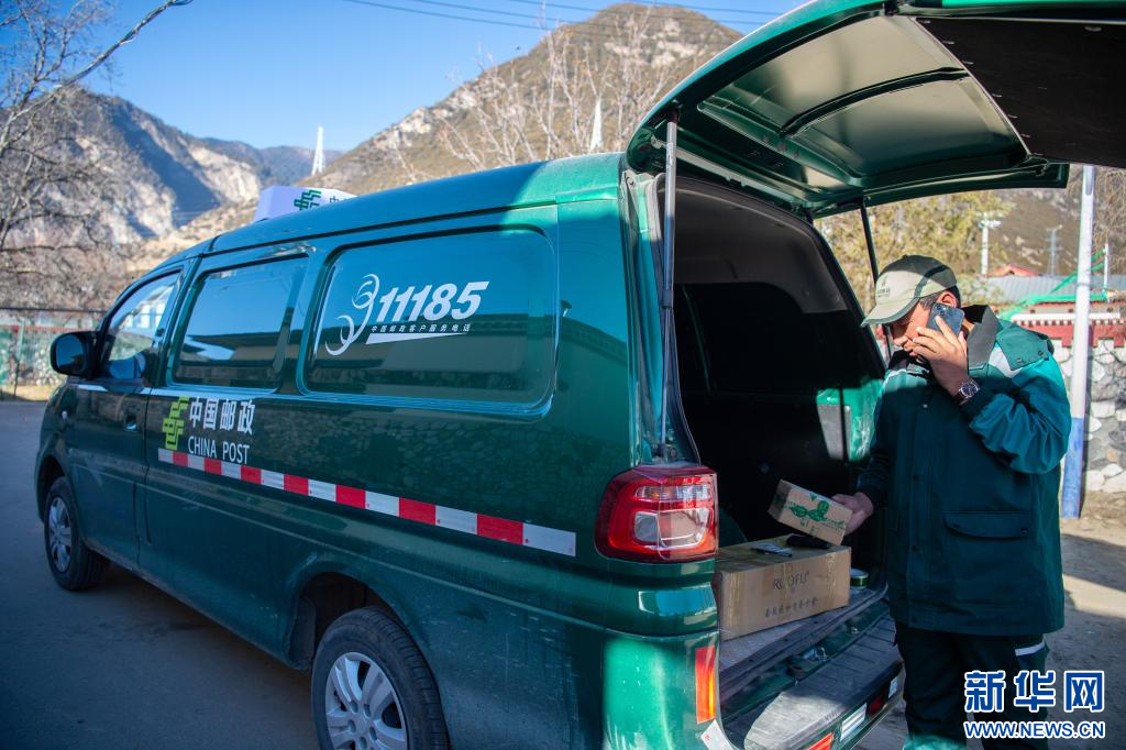 1月19日,在林芝鎮(zhèn)郵政所,郵遞員索朗次仁把準(zhǔn)備派送的快遞裝車。新華網(wǎng) 旦增努布 攝