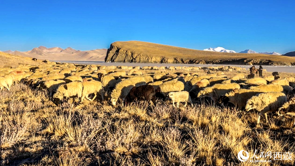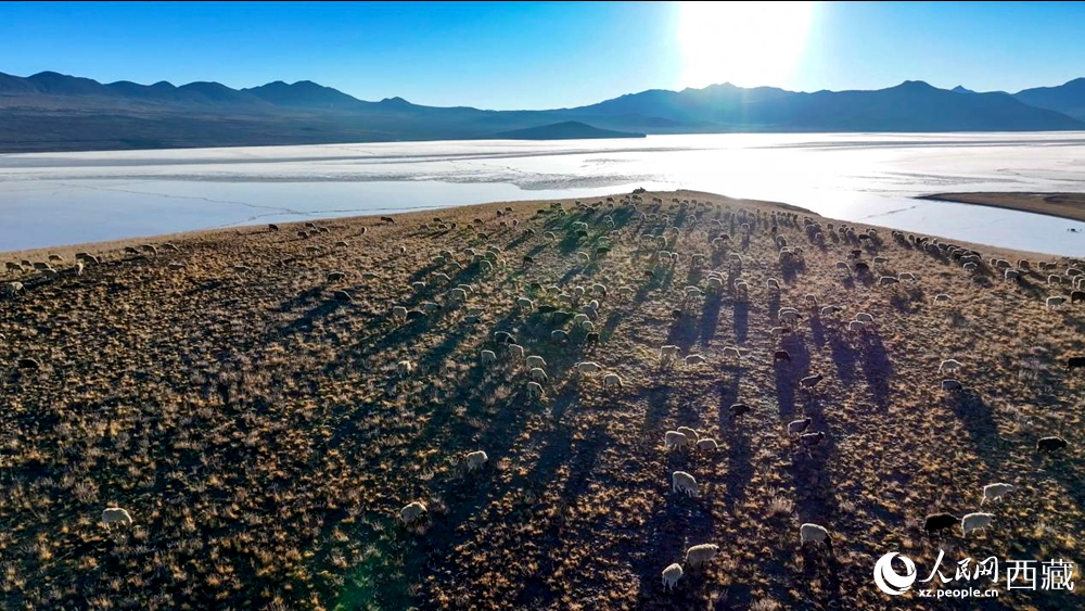 普莫雍錯“冰上趕羊”,是當(dāng)?shù)啬撩袷来鄠鞯墓爬现腔?。每年冬季,由于推瓦村海拔高、夏季短,草場無法為羊群提供充足的過冬飼料。因此,每年高原最冷的時候,推瓦村牧民會把羊群趕到普莫雍錯水草豐茂的湖心島,依靠島上的草料度過最寒冷的冬期。