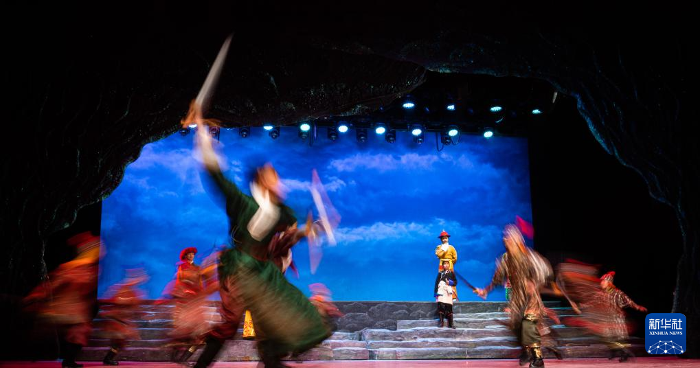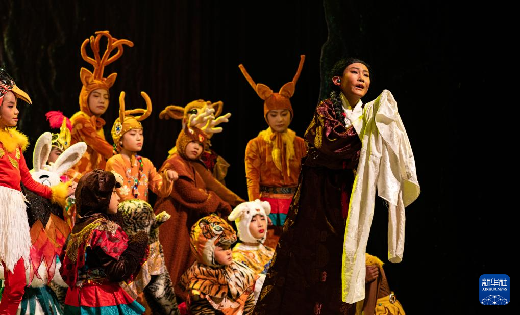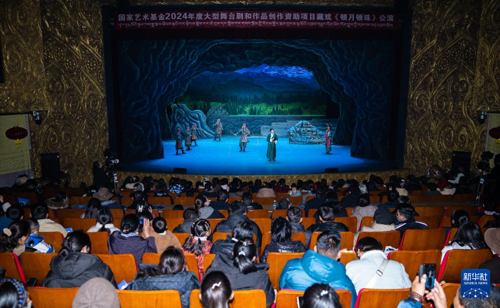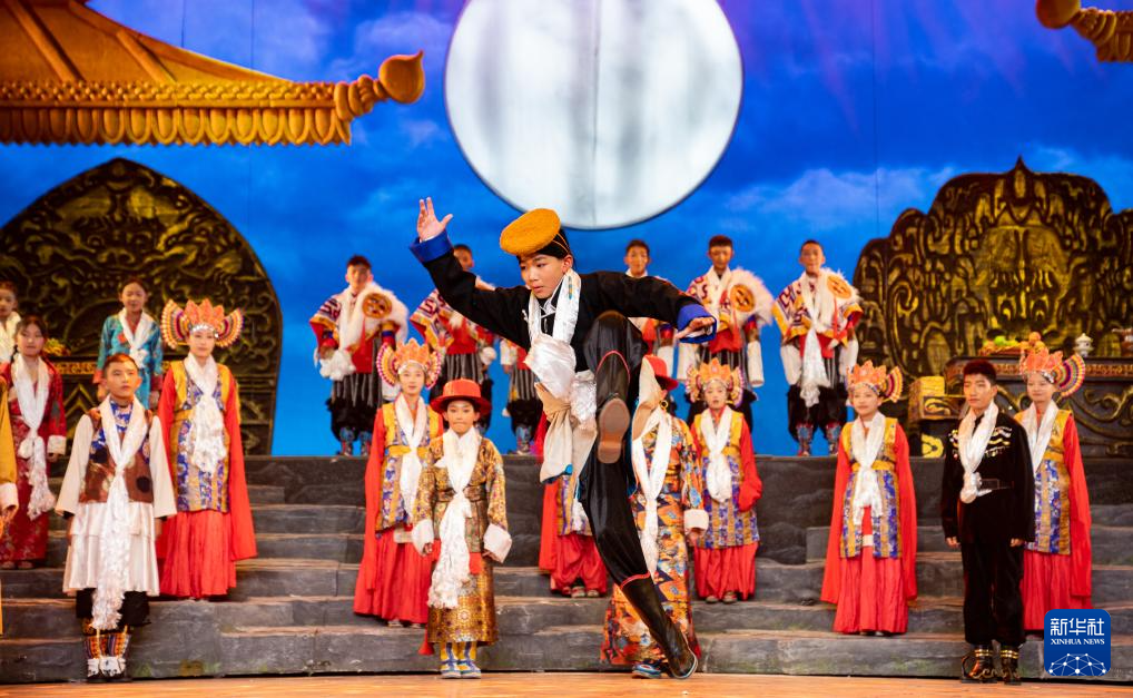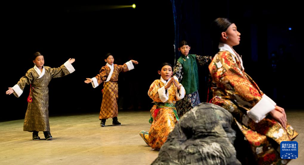 西藏首部少兒舞臺劇藏戲《頓月頓珠》演出現(xiàn)場(2月11日攝)。新華社記者 丁增尼達 攝