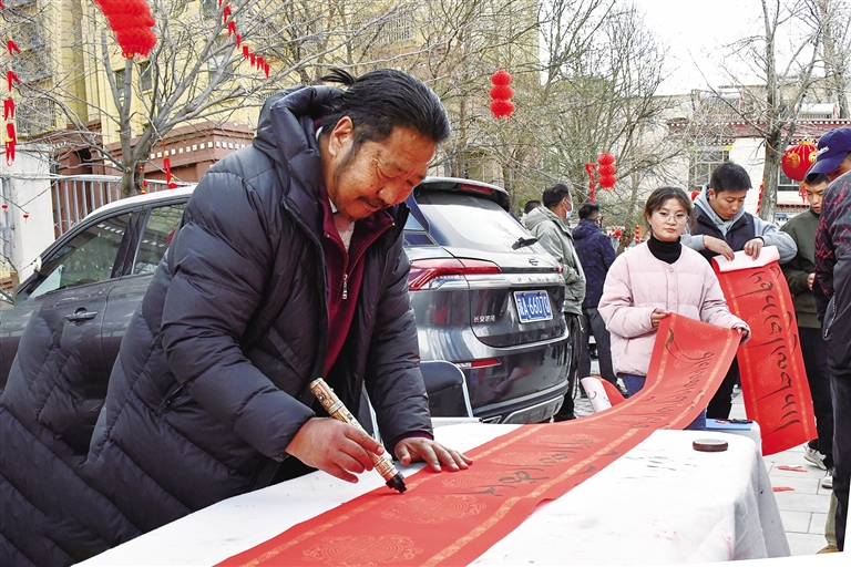 書法家給市民寫祝福語。記者 桑旦歐珠 攝