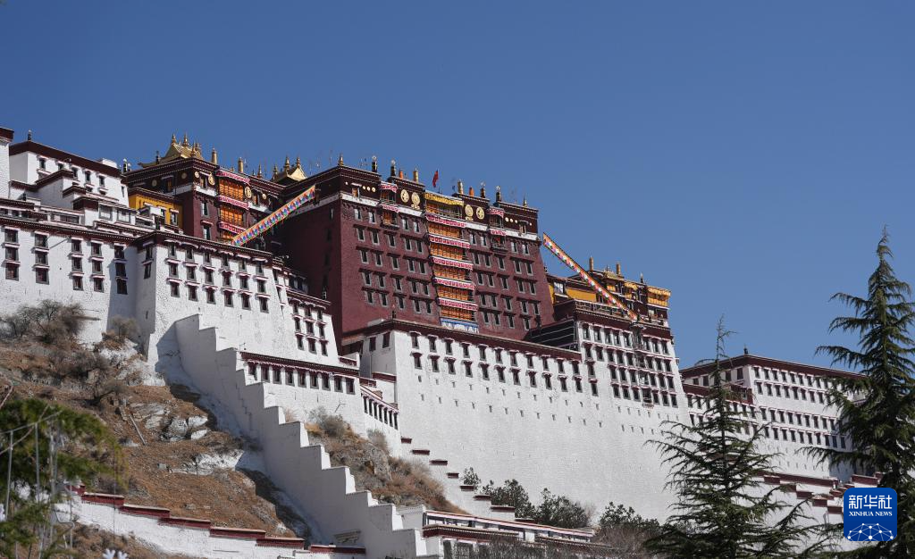 裝飾一新的布達拉宮(2月28日攝)。