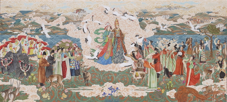 西藏的年畫起步較晚,但此次展覽卻給這一傳統(tǒng)藝術帶來了全新的發(fā)展契機?!靶律睢ば嘛L尚·新年畫”展覽負責人扎西諾布介紹,展覽共展出近100幅作品,來自97位藝術家。不同地域的風格在這方展廳中碰撞、交融,江南水鄉(xiāng)的溫婉細膩、巴蜀大地的熱情奔放、湘楚文化的靈動飄逸、青藏高原的粗獷豪邁,都通過一幅幅年畫展現(xiàn)得淋漓盡致。