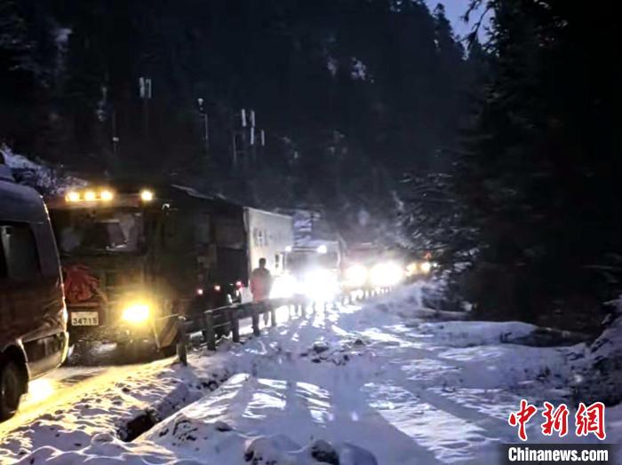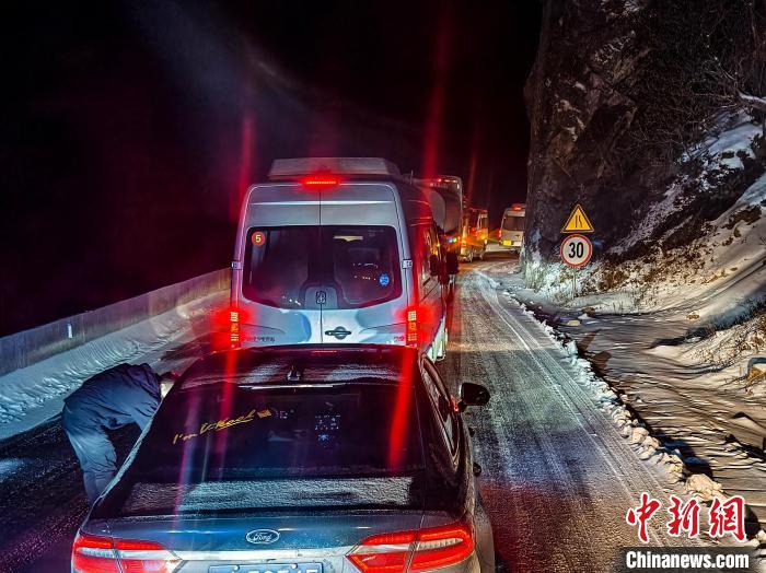 當夜幕降臨之時,大風夾著雪粒呼嘯不止,山上的氣溫也越來越低,部分司乘人員出現(xiàn)焦慮,官兵們一邊耐心地安撫司乘人員焦急的情緒,一邊有條不紊地指揮車輛緩緩挪動。