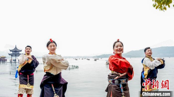 活動(dòng)當(dāng)天,身著彩云紋藏裝的波密兒女踏歌而來(lái),沿著斷橋、雷峰塔等西湖文化地標(biāo),開啟流動(dòng)的藝術(shù)巡演。藏式廣袖輕揚(yáng)間掠過(guò)湖光,自發(fā)加入的游客與藏族演員即興共舞,在千年勝景中勾勒出民族交往交流交融的動(dòng)人圖景。活動(dòng)現(xiàn)場(chǎng),熱情的藏族姑娘、藏族小伙為參與互動(dòng)的游客送上“桃花氣球”和文創(chuàng)禮品,將高原春日的印記留在江南水岸。