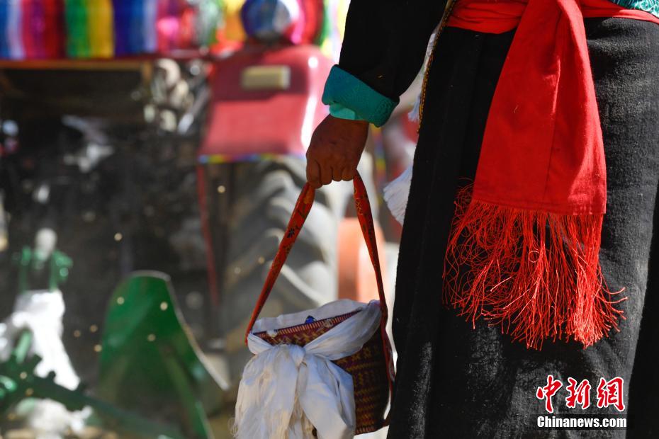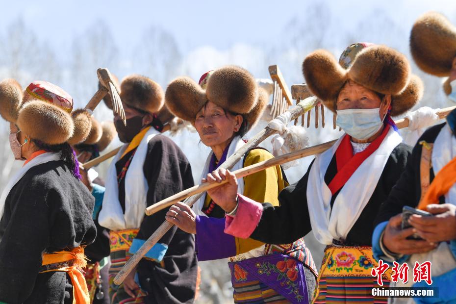 3月16日,西藏拉薩迎來(lái)一年一度的傳統(tǒng)春耕儀式。當(dāng)日,拉薩市曲水縣色達(dá)村村民身著節(jié)日盛裝,相聚在田間,載歌載舞,共同迎接春耕第一犁。家家戶戶端著自家的“切瑪”(象征五谷豐登)帶著青稞酒、酥油茶等物品聚在田間,互敬青稞酒,開始撒種,祈求全年風(fēng)調(diào)雨順、五谷豐登。圖為曲水縣色達(dá)村春耕儀式現(xiàn)場(chǎng)。中新社記者 貢嘎來(lái)松 攝