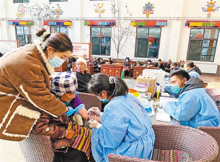 近日,浪卡子縣中心人民醫(yī)院醫(yī)療團隊開展免費體檢公益活動,為浪卡子縣五保戶集中供養(yǎng)中心的特困人員送去關(guān)懷。