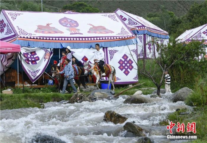 2024年7月28日,市民在位于西藏自治區(qū)拉薩市堆龍德慶區(qū)的達(dá)東村“過(guò)林卡”。過(guò)林卡是藏族人最普遍的休閑娛樂(lè)方式,類(lèi)似于郊游和野餐。中新社記者 貢嘎來(lái)松 攝