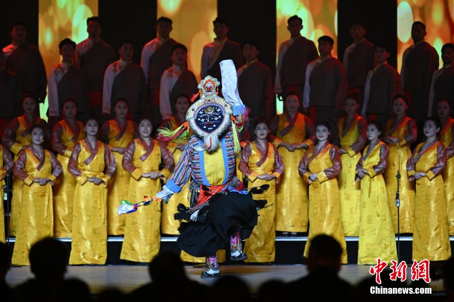 3月27日晚,為紀(jì)念西藏百萬(wàn)農(nóng)奴解放66周年,由中共拉薩市委、拉薩市人民政府主辦,拉薩市委宣傳部承辦的“盛世中國(guó)幸福西藏”拉薩市紀(jì)念西藏百萬(wàn)農(nóng)奴解放66周年群眾合唱比賽,在拉薩市群眾文化體育中心激昂上演。據(jù)悉,本次合唱比賽共有11支隊(duì)伍,由拉薩市各縣(區(qū))、功能園區(qū)、農(nóng)牧民群眾、企業(yè)職工等組成。所有演唱者們精神飽滿(mǎn),歌聲或激昂有力,或深情婉轉(zhuǎn),歌頌西藏66年來(lái)從黑暗走向光明、從貧窮走向富裕的偉大跨越。圖為拉薩市堆龍德慶區(qū)代表隊(duì)在演唱《天路》前表演藏戲。